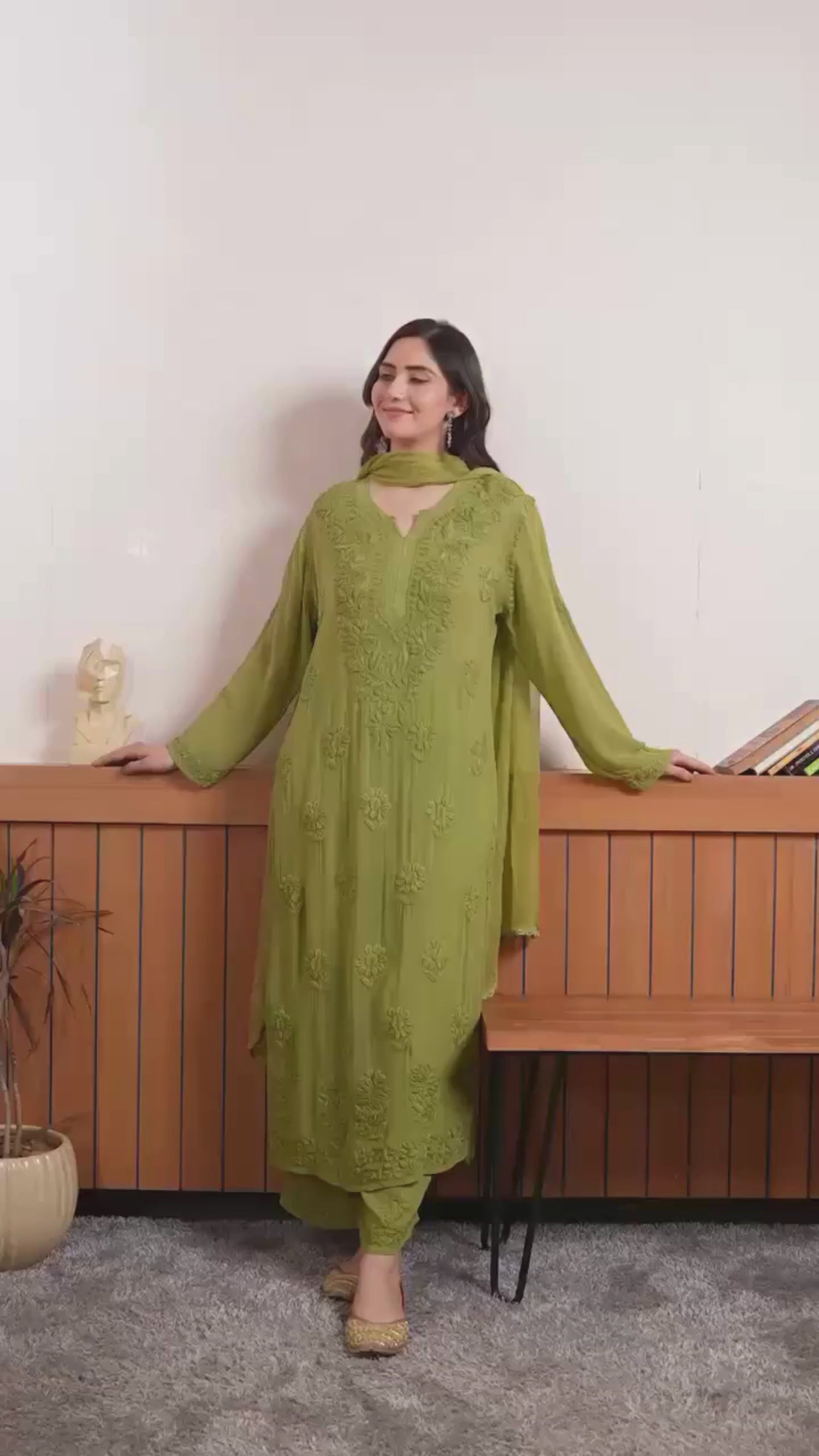 Nooraya Embroidered Chinon Top–Pant–Dupatta Set
