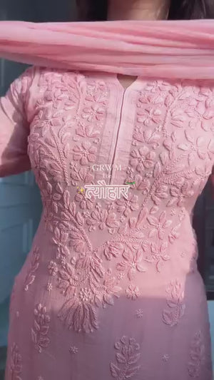 A comfortable and elegant 3-piece kurta set crafted in reyon fabric, designed for everyday wear with a refined ethnic touch. Featuring embroidery work on the top and plazo, paired with a reyon dupatta with ressa lace work, this ensemble offers a balanced combination of style and comfort.
