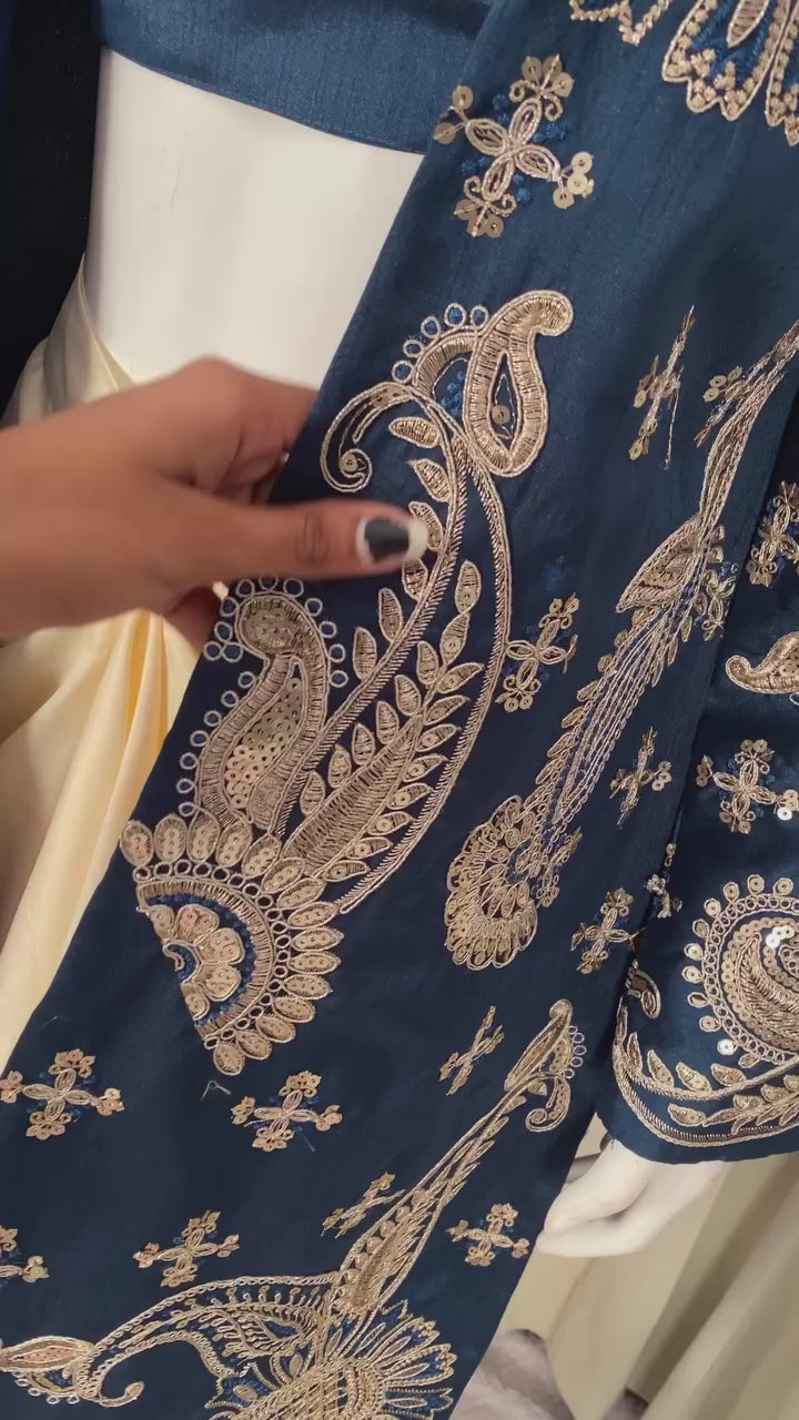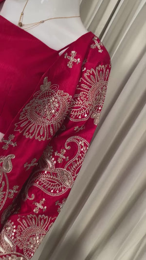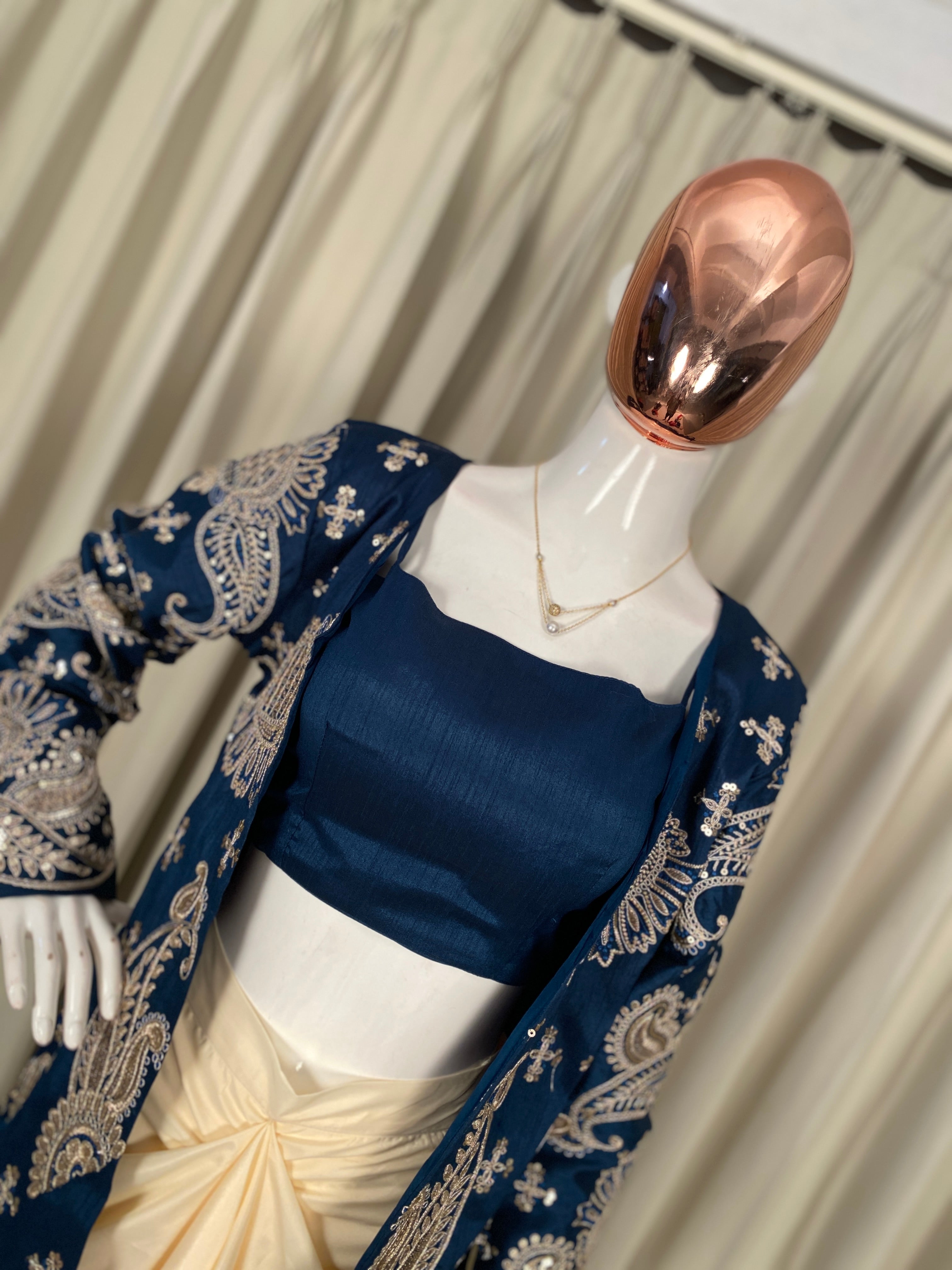 Designer 3 Piece Koti Blouse Skirt Set with Cording Sequin Embroidery | Party & Wedding Wear