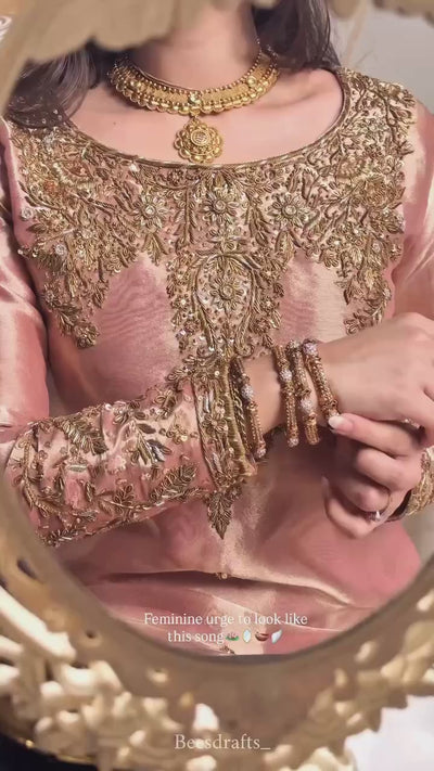 A ready-to-wear 3-piece set made from pure ZMY silk, featuring heavy embroidery with 5mm sequence work. The set includes a fully stitched top with full sleeves, matching embroidered pant with elastic waist, and a coordinated dupatta with four-side fancy lace work. Designed for a stylish and comfortable ethnic look.