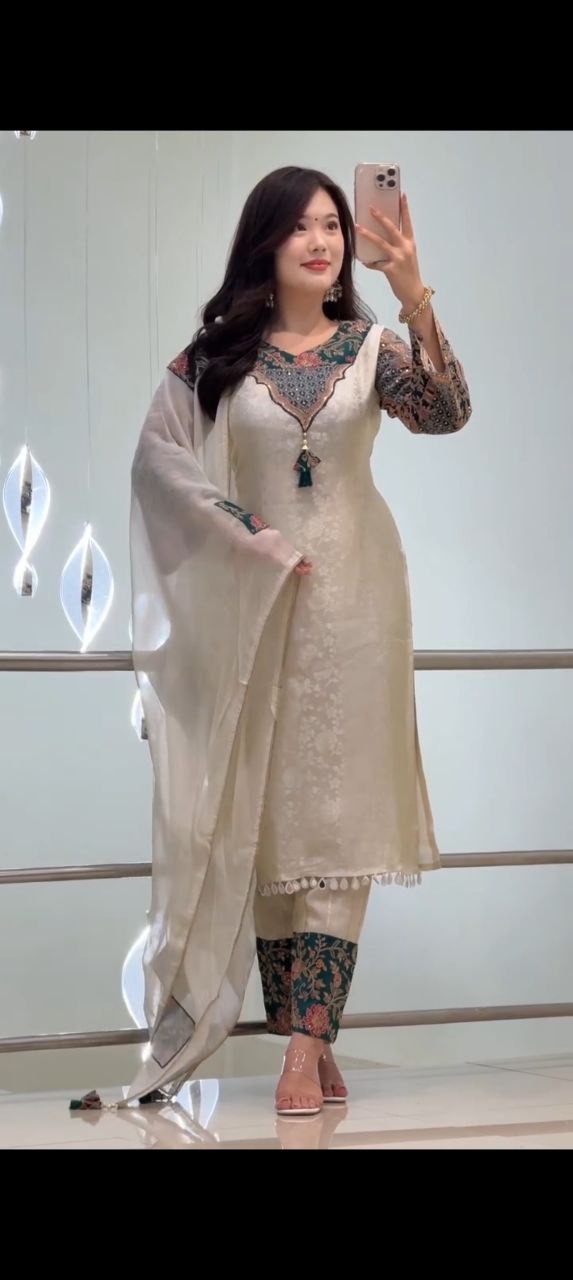 Premium quality Banarasi suit set suitable for festive and traditional wear.
