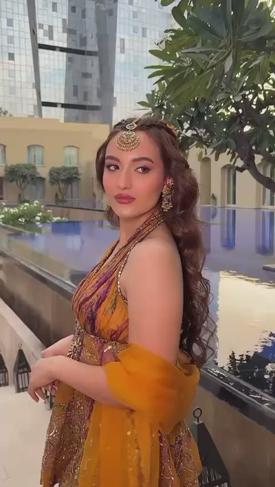 Kesar Yellow Organza & Georgette Hand Embroidered Top, Sharara & Dupatta